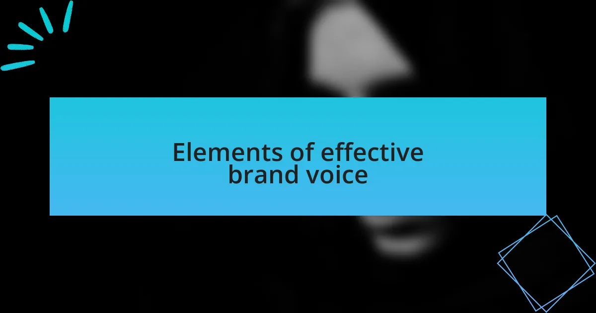 Effective brand voice comprises several critical elements that resonate deeply with audiences. One vital aspect is authenticity. I recall a project where our agency’s genuine enthusiasm for the work translated into our messaging. Clients appreciated the heartfelt communication, which made them feel valued and connected. Have you ever considered how being true to your brand’s mission could enhance your relationships with clients?