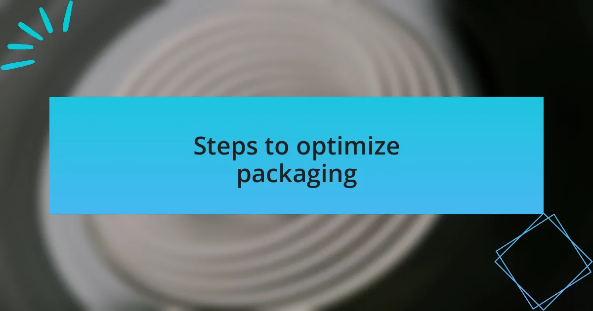 To optimize packaging, the first step is selecting the right materials. When I switched from traditional cardboard to lightweight, biodegradable options, I noticed a significant decrease in shipping costs while maintaining product integrity. This decision not only reduced my expenses but also aligned with my values of sustainability. Have you ever considered how your packaging choices impact the environment and your budget?
