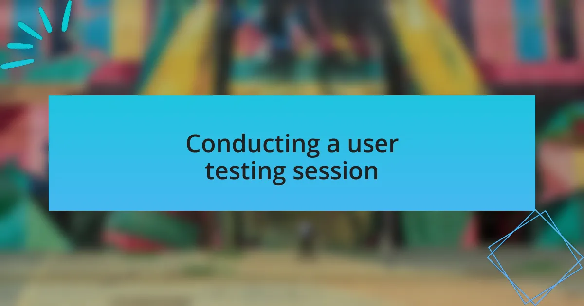 Conducting a user testing session requires careful planning and an open mind. I remember setting up the room, ensuring that every detail, from the environment to the technology, was just right. Once the session began, I encouraged participants to express their thoughts freely, reminding myself that their insights would yield the most valuable feedback.