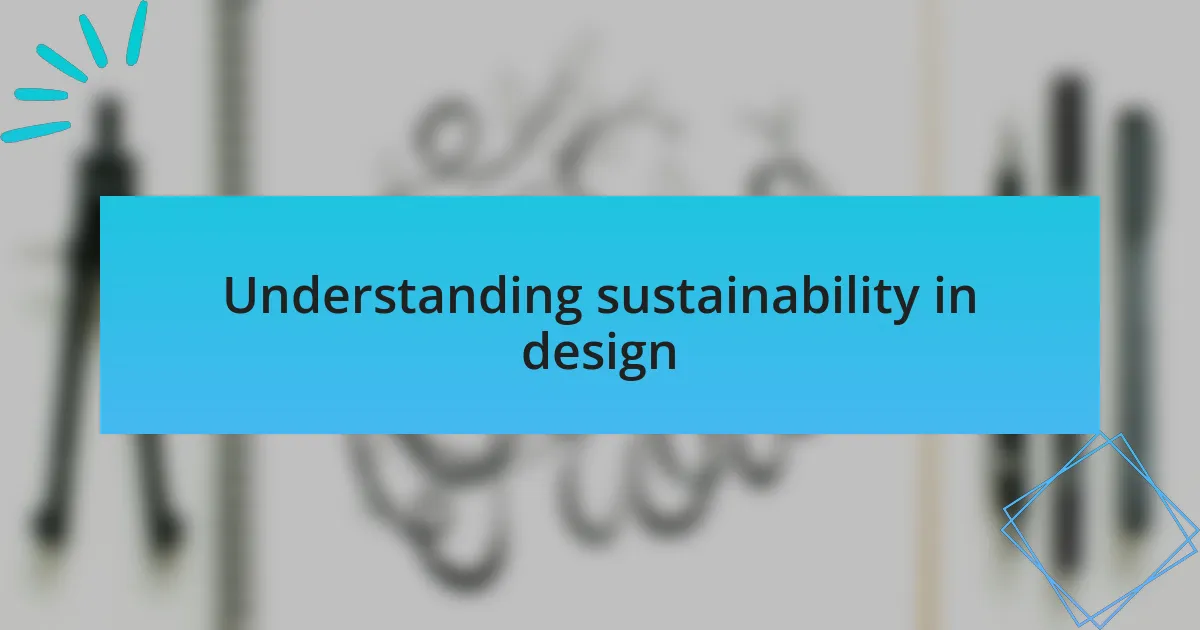 Sustainability in design is about creating with intention, focusing not just on aesthetics but also on the long-term impact of materials and processes. I remember a project where we used reclaimed wood for a client’s interior. It didn’t just add character; it sparked conversations about the importance of reusing resources. Isn’t it fascinating how design choices can lead to a deeper appreciation for the environment?