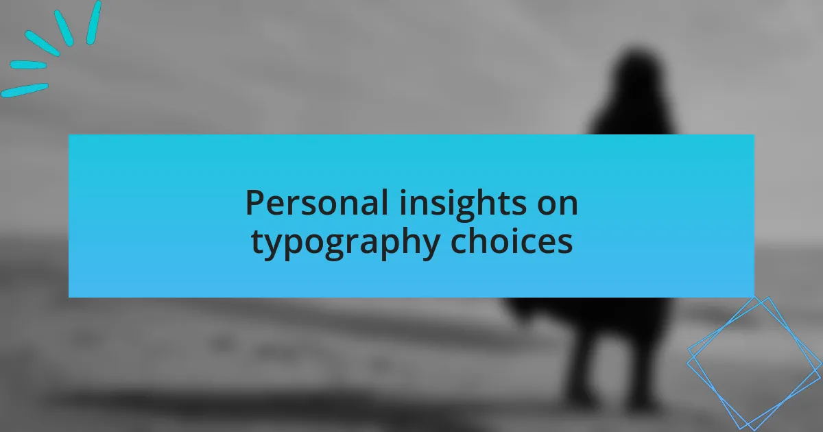When I choose typography for a project, I often reflect on how it will resonate emotionally with the audience. For instance, during a recent design for a children’s book, I opted for a playful, bubbly font that instantly felt cheerful and accessible. That feeling of delight when seeing a child engage with the story was incredibly rewarding for me; it reinforced my belief that type can genuinely enhance emotional connection. Does it make you smile to think how something as simple as a font can evoke joy?